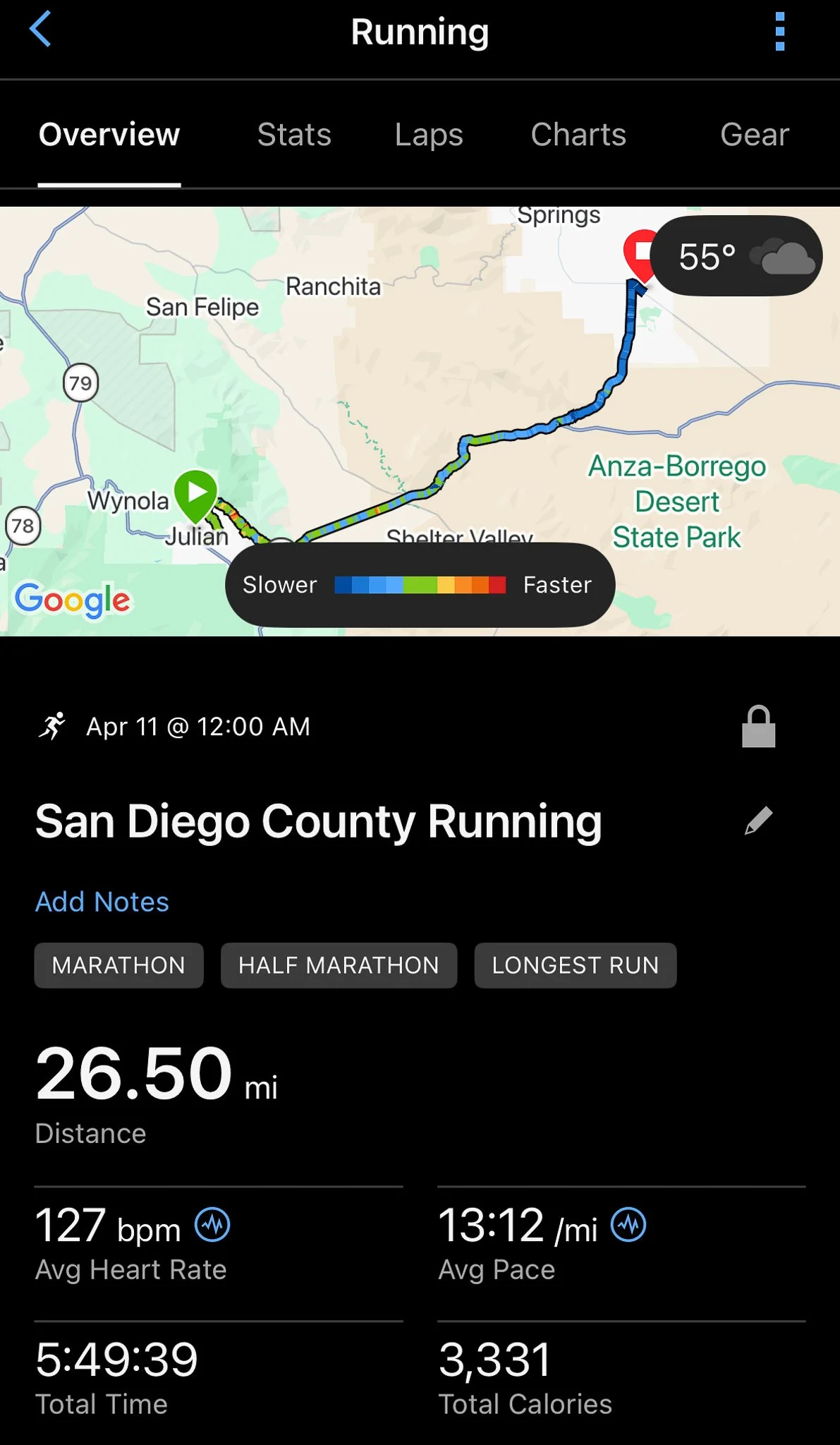 I run for a while longer. After a certain point, I don’t know what I’m at, but I know it’s over. I keep going. I’m not sure how accurate these Garmin watches are, and I want to run a little extra just to make sure I did it.